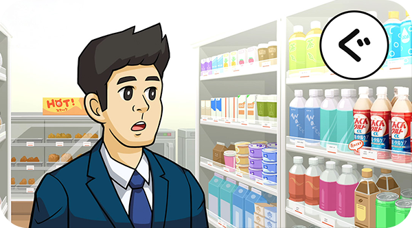 お店の棚に十六茶が復活!それを見たおにぎりがボソッと一言。なんと言った?
